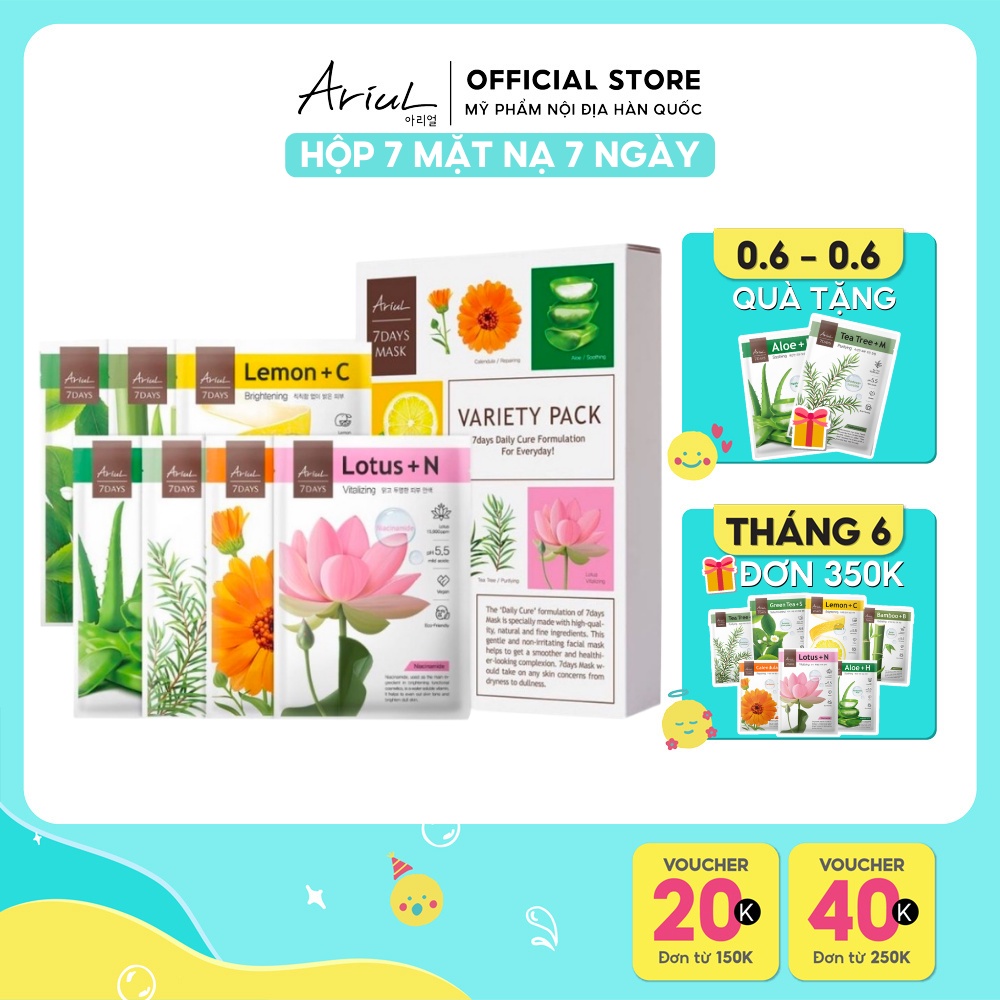 Hộp Mặt Nạ 7 Ngày Ariul 7 Days Mask - Tinh chất thiên nhiên cho da căng mướt cả tuần (7 miếng/hộp)