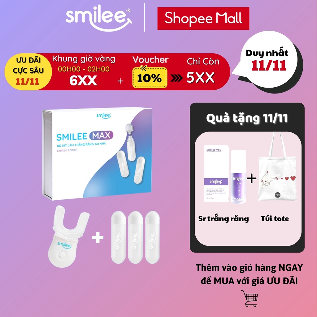 Trắng răng tại nhà Smilee Max, trắng từ 3 đến 6 tone sau 1 liệu trình, ngăn ngừa sâu răng, viêm nướu. Hàng chính hãng